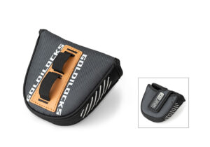 カバーをはずしてパッティングする時に、留め具のロゴバッジ部分をポケットなどに差し込んで保持しやすいように長めに設計されています。