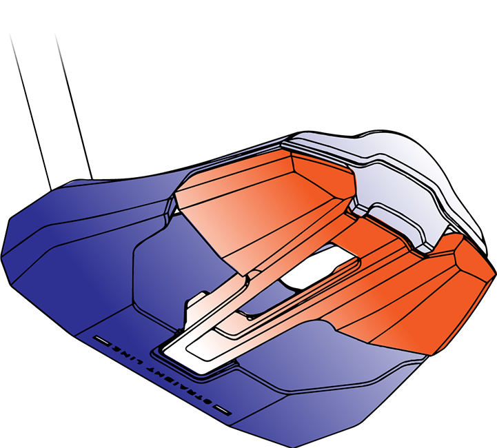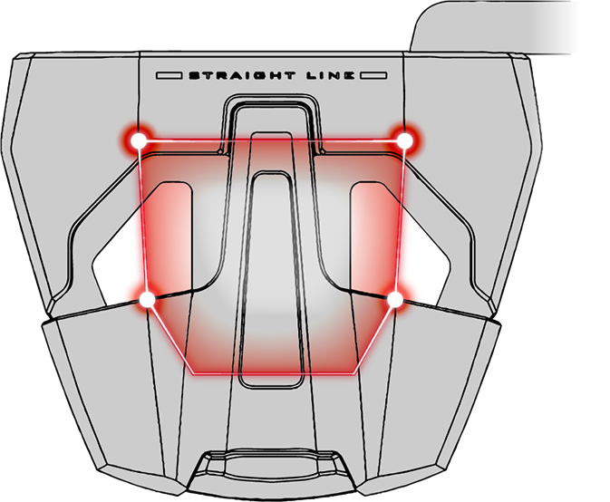 「ストレートライン」に採用されているバンプサイトは、ボールの高さと一致したとき、パターのスイートスポットとボール中心の高さも一致します。バンプサイトの表面全体がインパクトでボールと一致する目標となり、ボールをスイートスポットに導きます。